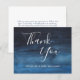 Carte de remerciements mariage à budget moderne avec un design simple avec "Merci" dans un script blanc écrit à la main et votre nom dans une police sans serif, sur un lavage d'aquarelle bleu marine foncé. L'envers a votre message personnel. La couleur bleu marine fait de cet hôtel un lieu idéal pour un mariage d'hiver. Ce carte de remerciements non photo mariage est idéal pour un couple marié qui veut des cartes de remerciements sans photos.