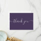 Carte de remerciement avec écriture violette simple moderne élégante. Vous pouvez personnaliser avec votre propre message de remerciement au verso ou si vous préférez ajouter votre propre message manuscrit, supprimez simplement le texte. Un moyen parfait de dire merci ! Conçu par Thisisnotme©