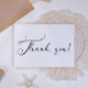 Carte de remerciement de mariage avec écriture simple moderne noire. Design moderne simpliste. Voir la collection complète dans notre boutique.