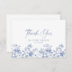 Élégant éditable facile à utiliser modèles mariage, plus d'articles (invitations, rsvp, cartes de remerciements, papeterie & décoration) avec le même design sont disponibles dans le magasin. Pour plus de personnalisation, cliquez sur "Personnaliser ce modèle", puis sur "Modifier à l'aide de l'outil de conception". Elégante Carte de remerciements Bleue Fleurs de Jardin Français.