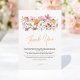 Cette élégante carte de remerciements de douche fleur sauvage boho présente un agencement délicat de fleurs d'aquarelle dans des tons roses doux, pêche et terreux. Le message sincère express la gratitude pour l'amour et le soutien reçus à cette occasion spéciale. Parfait pour remercier les amis et la famille pour leur présence et les cadeaux réfléchis