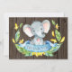 Carte De Remerciements Élégant Éléphant Bébé Garçon Bleu et Gris Rustique