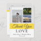 Carte De Remerciements Élégant Gris Jaune Script Mariage Photo collage T