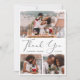 Elégant collage photo mariage carte de remerciements avec "Merci" dans un grand script de calligraphie contemporaine. Ajoutez 3 photos et vos noms et date mariage dans la typographie moderne. Au contraire, personnalisez votre message de remerciement de manière plus détaillée et ajoutez vos noms mariés dans un script signature.