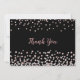Elégant design d'invitation à la fête de graduation personnalisée avec l'or rose et l'argent confetti sur un arrière - plan noir et script moderne avec les mots "Merci" (en or rose). Personnalisez-le avec votre message de remerciement et fermez-le au dos de la carte.