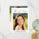 Élégant carte de remerciements de remise de diplômes avec la photo du diplômé, "merci" dans un script élégant et leur nom, l'école et l'année de classe en simple typographie. Au contraire, ajoutez une photo supplémentaire, personnalisez un message de remerciement et ajoutez le nom du grad dans un script signature.