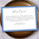 Une belle carte de remerciements funéraire pour express la gratitude de votre famille. Le design comporte une croix simple et votre texte personnalisé. Modifiez facilement la couleur arrière - plan pour qu'elle corresponde à votre style. Élégant et classique - ce modèle vous permet de dire merci à vos invités funéraires pour leurs aimables paroles, cartes et soutien. (Vous pouvez également supprimer le message tapé et laisser l'espace vide pour un message manuscrit.)
