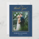 Ce carte de remerciements photo simple et minimaliste est doté d'un texte en or élégant avec un coeur entre les mots "merci". Vous pouvez personnaliser le design en ajoutant le nom de la mariée et du marié, la date, le message à vos amis et votre famille, et votre photo préférée. Cette carte fait partie de ma collection Colorful Gold Tropical Lily Mariage; s'il vous plaît parcourir ma collection pour plus d'articles mariages correspondants. La carte est présentée en quatre couleurs arrière - plans : turquoise, bleu, noir et blanc.