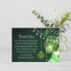Cette charmante carte de remerciements à mariage plat présente un beau design celtique avec un trèfle charmant et des lampes à cordes sur un arrière - plan vert. - Merci texte - "Merci pour célébrer notre journée spéciale avec nous ! Nous vous sommes reconnaissants pour votre généreux don et vos voeux de bienvenue. Nous espérons que vous avez apprécié la journée autant que nous l'avons fait. amour et merci,<Names>" - Le texte de remerciement peut être personnalisé pour lire comme vous le souhaitez.