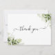 Carte de remerciement simple avec feuilles de verdure et écriture élégante. Vous pouvez personnaliser avec votre propre message de remerciement au verso ou si vous préférez ajouter votre propre message manuscrit, supprimez simplement le texte. Un moyen parfait de dire merci ! Conçu par Thisisnotme©