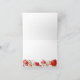Design élégant avec des fleurs rouges profondes et de la verdure tombante avec Merci. À l'intérieur, il y a un motif floral similaire dans la partie inférieure de la carte.