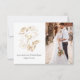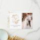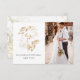 Carte de remerciements pour mariage avec feuille or design et personnalisable
