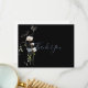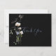 Ce carte de remerciements de mariage noir à fleurs de forêt sauvage est parfait pour un mariage rustique. Ce design présente une aquarelle peinte à la main, des fleurs de forêt sauvage blanches et bleues avec un feuillage vert dans un arrière - plan noir.
