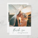 Carte de remerciements de mariage élégante avec une disposition simple et minimale avec une combinaison d'une police serif classique et d'une calligraphie manuscrite moderne sous votre photo préférée. Le dos a une deuxième image avec votre message personnalisé. Le thème de couleur est à feuillage persistant / vert forêt et peut être modifié dans l'outil d'édition de conception. Cette élégante carte de remerciements typographique est idéale pour un mariage formel.
