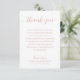 Un simple carte de remerciements blanc présente un exemple de message en lettres rose chic que vous pouvez utiliser ou modifier à vos propres mots pour des notes de remerciement personnalisées pour votre célébration de la vie, funérailles ou mémorial.