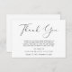 Un carte de remerciements commémoratif de sympathie simple et élégant avec "Merci" dans un joli script de calligraphie et votre message de remerciement et le nom de quelqu'un dans la typographie moderne.