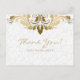 Elégant tourbillon floral or sur damas blancs personnalisable carte de remerciements.