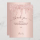 Un arrière - plan d'or rose, décoré avec des gouttes, peint goutte à goutte. Script écrit à grande main avec des swashes et le texte : Merci. Personnalisez et ajoutez votre note de remerciement et votre nom.
