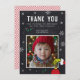 Même le coeur du Grinch a grandi en trois tailles, grâce à vos surprises extraordinaires ! Cette carte de remerciements joyeuse capte l'esprit des vacances avec un design de tableau noir, des flocons de neige et un clin d'oeil ludique au Grinch. C’est la façon idéale d’envoyer un message de gratitude sincère pour tous les merveilleux cadeaux et l’amour reçus, en transformant une fête d’anniversaire en un événement de vie. Avec une place pour une photo chère, cette carte est un souvenir amusant d'une journée vraiment spéciale.