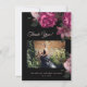 This elegant dark moody floral wedding thank you card features hand painted pink roses and a custom photo.