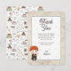 Thank guests for coming to a magical celebration with this charming birthday thank you card featuring a cute chibi-style illustration inspired by Ron Weasley from the Harry Potter series. The design showcases the red-haired wizard wearing his Gryffindor-themed robe and holding a wand, surrounded by colorful starburst accents. A parchment-look border frames the layout, while the back of the card is decorated with whimsical wizarding icons like cauldrons, books, Dobby, and more. Personalize the text with your child’s name and thank you message to create an enchanting thank you card perfect for little Harry Potter fans.