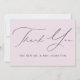 Carte de remerciements de mariage élégant avec "Merci" dans un script de calligraphie noir avec votre nom affiché ci-dessous contre un arrière - plan lavande violet. L'élégante carte de remerciements de mariage s'inverse pour afficher votre message de remerciement personnalisé et vos prénoms en lettres noires. Le design est coordonné avec notre collection Modern Elegance mariage.