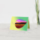 Step into a vibrant world where nature meets imagination with the Leaffield greeting card. This striking design features a bold, leaf-shaped window framing a surreal landscape bursting with vivid hues—warm golden fields, deep shadows, and a sky painted in radiant pinks, purples, and sunset tones.