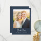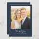 This elegant wedding thank you card features a warm, romantic photo design with soft lighting that evokes a sense of joy and celebration. The layout is simple yet sophisticated, with a clean border framing the central image area, perfect for adding your own cherished moment. The typography is stylish and modern, complementing the overall aesthetic. With its gentle color palette and heartfelt tone, this card captures the essence of gratitude and love, making it an ideal choice to express thanks after a special occasion. Customize it effortlessly to personalize your message for loved ones.