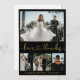 Elégant, moderne Mariage de script or 4 Photo Collage Black Carte de remerciements. Modèle de carte mariage minimaliste avec quatre (4) photos en grille sur le devant et une (1) photo sur le côté arrière. Texte "Amour et merci" dans une calligraphie lettrée à la main script de police de coeur mignon avec la queue en or sur arrière - plan noir. Personnalisez avec votre nom et message de remerciement. Si vous avez besoin d'aide ou d'un article correspondant, veuillez contacter le concepteur !