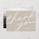 Carte de remerciements photo minimal moderne Mariage dans le beige marron clair taupe et Script de calligraphie. Customisez-le avec votre propre image de choix sur le dos.