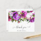 Mariage à budget floral Carte de remerciements avec des pivoines dans violet vif et audacieux, fuschia et violet avec "merci" dans un script fantaisiste avec des swashes. Ces élégantes tonalités de bijou Mariage Merci Les cartes dans les tons violets lumineux sont parfaites pour un mariage d'été.