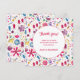 Une aquarelle de fleurs et de feuilles aux couleurs riches éparpillée sur un arrière - plan blanc. Une magnifique carte assortie pour remercier vos invités mariages pour une journée merveilleuse.