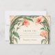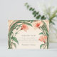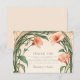 Un faire-part de mariage romantique aux tons coralliens, enveloppé de vignes luxuriantes de style Art Nouveau. Avec ses feuillages verts aux courbes douces et ses fleurs rose saumon radieuses, ce design évoque une élégance botanique rêvée, parfaite pour un jardin d'été ou un mariage romantique d'inspiration nature.