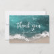 Le carte de remerciements romantique à thème côtier dispose de belle moody abstraite aquarelle étincelante vague océanique et arrière - plan de plage, surmonté d'un script élégant et des détails de police élégants, moderne et simple, idéal pour le mariage de plage de sable, mariage de destination tropicale, mariage à thème océanique côtier. Voir toutes les pièces correspondantes dans la collection.