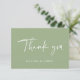 Moderne Elegant Sage Green Script Mariage manuscrit Carte de remerciements personnalisé pour envoyer des messages de remerciement à vos invités mariages dans le style. Personnalisez ces Cartes de Remerciements Mariage de script de calligraphie avec vos propres noms et message au dos.