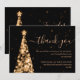 Elégant & Festive Xmas Tree Mariage Gold "Merci" modèle de carte, avec texte de remerciement, feux de parties scintillant Noël Arbre et script de typographie moderne.