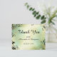 Merci de carte mariage plat dans une nuisance romantique de bleu, vert et crème avec une bordure tourbillonnant feutrée noire. Personnalisez avec vos noms et votre date. Correspond au faire-part de mariage Enchanted de Soirée Lumineuse et d'autres éléments dans ce même design à MonogramandMonikers sur Zazzle.