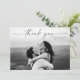 Mariage de photo de script élégant élégant carte de remerciements moderne élégant. Partie d'une collection mariage. Les couleurs peuvent être changées. Le dos comprend un message de remerciement que vous pouvez personnaliser pour chaque invité ou supprimer si vous préférez écrire votre remerciement à la main. Cliquez sur le bouton Modifier pour customiser.