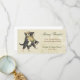 Sweet vintage marié chat tient un bouquet de mariage rose blanc et le chat Groom se mèche à côté d'elle avec son chapeau noir. Arrière - plan floral ivoire. La carte est accentuée avec un ruban satiné. Customisez ces mariages, merci aux cartes photos de vous remercier de leur don.