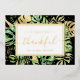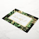 Ce carte de remerciements tropical moderne présente des palmiers verts et dorés, des philodendrons et des feuilles de fougères sur un arrière - plan noir. Un cadre élégant en feuille d'or met en évidence le texte en feuille sombre. Les plaques en feuille d'or accentuent ce design botanique exotique et apportent un peu de fantaisie sophistiquée à l'invitation. Le dos peut avoir un message personnalisé imprimé sur chaque carte ou peut être laissé vide pour permettre un message manuscrit par la mariée et le marié.
