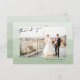 Cette carte de remerciements moderne et chic présente un élégant script écrit à la main "merci" sur le devant avec un arrière - plan d'aquarelle vert sauge. Personnalisez facilement le dos avec un message de remerciement à votre famille et à vos amis. Trouvez les éléments correspondants dans la collection Sage Watercolor Ombre.