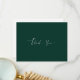 Envoyez cette belle carte de remerciement romantique à remercier votre invité pour avoir fait partie de votre journée spéciale. le devant présente la typographie blanche "merci" lettrage sur arrière - plan vert émeraude et le dos votre massage personnel à votre famille et vos amis..