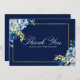 Carte De Remerciements Marine Blue Gold Floral Élégant Script blanc
