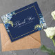 D'élégantes roses bleues et blanches décorent ce magnifique carte de remerciements de soirée fleuri. Le cadre chic en fausse feuille d'or est agrémenté de jolies fleurs d'aquarelle d'indigo et d'une jolie tige botanique jaune clair. Les noms du couple sont écrits en écriture cursive blanche classique dans la bordure rectangle de cette carte d'hiver moderne.