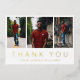Carte de remerciement plate minimaliste avec plusieurs photos. Le recto a un collage photo de trois avec "Merci" en gros caractères et le nom du diplômé en papier d'or. L'envers a votre message personnel. Ce carte de remerciements moderne et simple est parfait pour un lycéen diplômé.