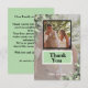 Exprimez votre gratitude avec une touche contemporaine en utilisant notre magnifique carte de remerciement de mariage avec photo, mettant en vedette votre moment spécial et un design vert menthe rafraîchissant. Cette carte de remerciement de mariage unique combine la photographie personnelle avec un style moderne pour créer un remerciement mémorable pour vos invités de mariage.