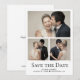 Modern, minimalist photo grid wedding save the date card. customize with three photos, your wedding date, names, and location. Instantly generate a QR code for your wedding website on the back as well..