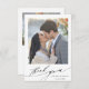 Carte de remerciements de mariage de calligraphie moderne et élégant avec une photo et un texte supplémentaires au dos. Vous pouvez utiliser cette carte pour un mariage, une douche nuptiale, un fiançailles, un anniversaire ou tout événement spécial. Pour une personnalisation plus avancée de cette conception, cliquez sur le BOUTON OUTIL DESIGN BLEU.