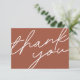 Carte de remerciements minimal moderne en terre cuite et blanc avec script de calligraphie. Customisez-le avec votre propre message au verso ou supprimez le texte au verso et ajoutez une note manuscrite.
