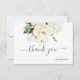 Carte De Remerciements Monogram Roses Hydrangea Alabaster Aquarelle